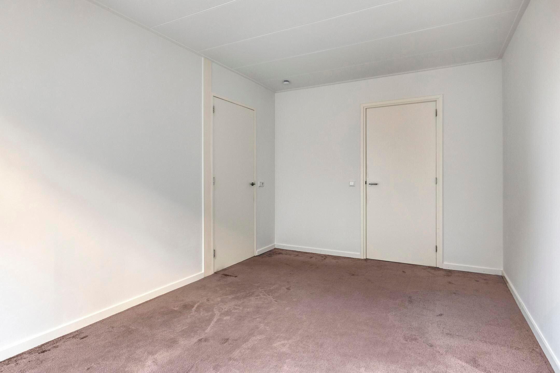 riante slaapkamer met aansluitend een badkamer met regendouche, wastafelmeubel, 2e toilet en designradiator; slaap-/hobbykamer met openslaande deuren naar de living.